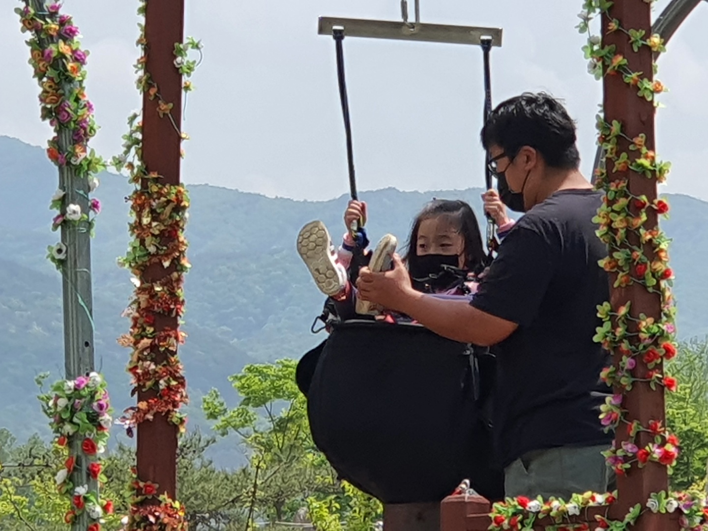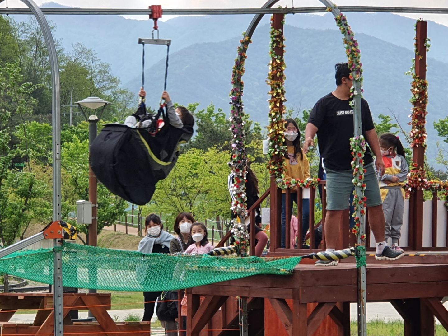 아주 짧은 약 2개월의 운영이었지만 간혹 에코스윙 운행 문의를 주시는 분들이 많은 제2 주차장에 다시 에코스윙을 설치하여 빠르면 7월 중순부터 무동력비행체험 에코스윙을 운영할 계획이다.